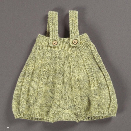 Her er opskrifter på strikkede bukser, små veste, sokker og savlesmæk, en lille jakke med lomme og den yndigste kjole.