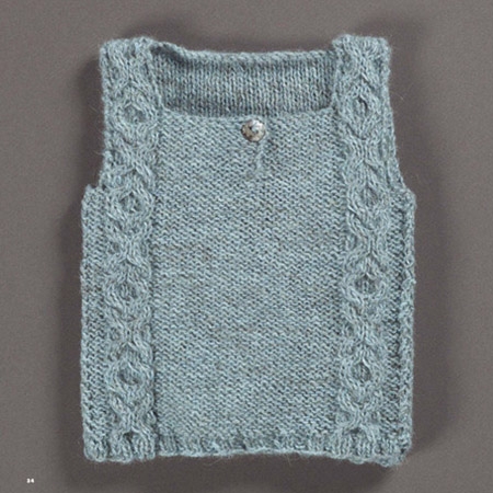 Her er opskrifter på strikkede bukser, små veste, sokker og savlesmæk, en lille jakke med lomme og den yndigste kjole.