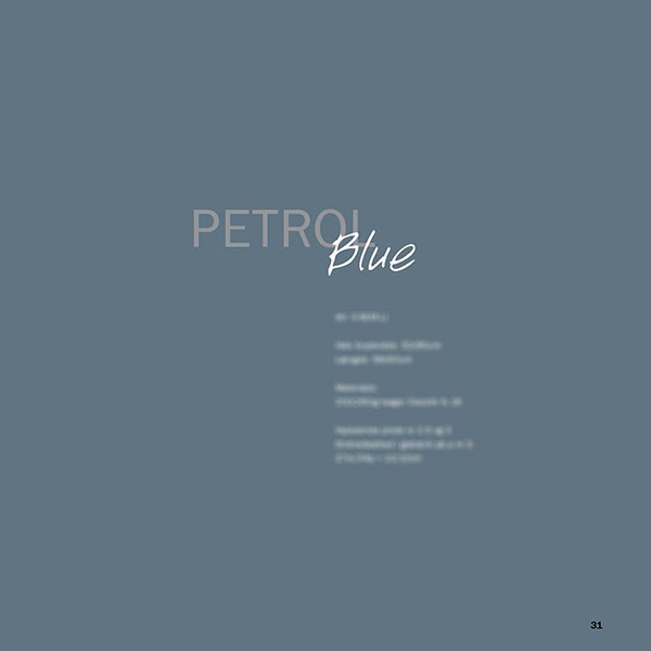 Susie viderefører sin sikre stil fra GREY DAYS – nu i blå nuancer. Opskrifterne er gennemarbejdede, designet som vi kender det fra Susie - meget enkelt og rent i udtrykket.