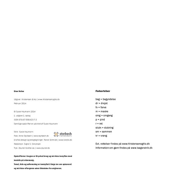 Susie viderefører sin sikre stil fra GREY DAYS – nu i blå nuancer. Opskrifterne er gennemarbejdede, designet som vi kender det fra Susie - meget enkelt og rent i udtrykket.