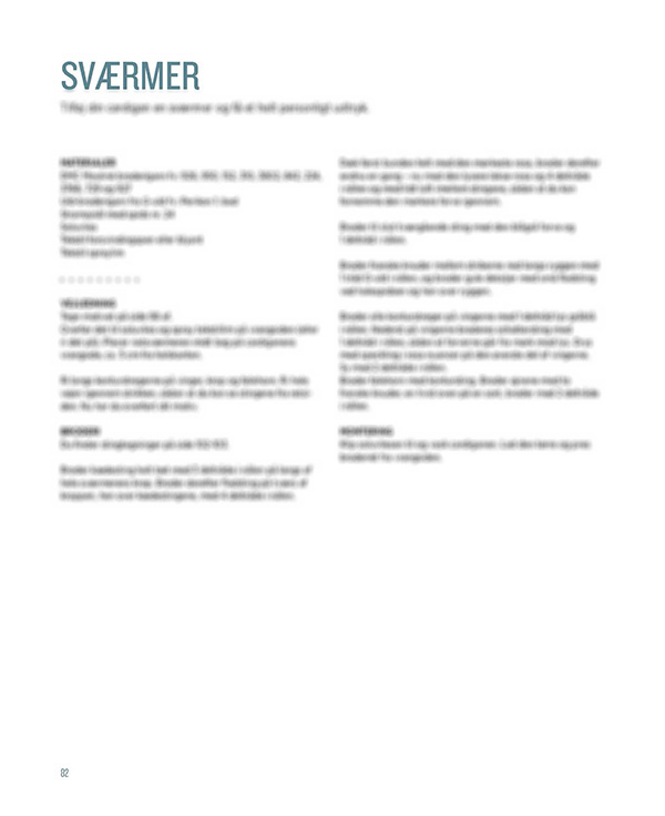 Designerne har smidt deres bedste designs, bunker af teknikker, fif og viden i en fælles pose, rystet den godt og kombineret det hele på den lækreste måde. Resultatet er blevet en delikat strikke-, hækle- og broderibog, fyldt med modeller både til den garvede og til begynderen.