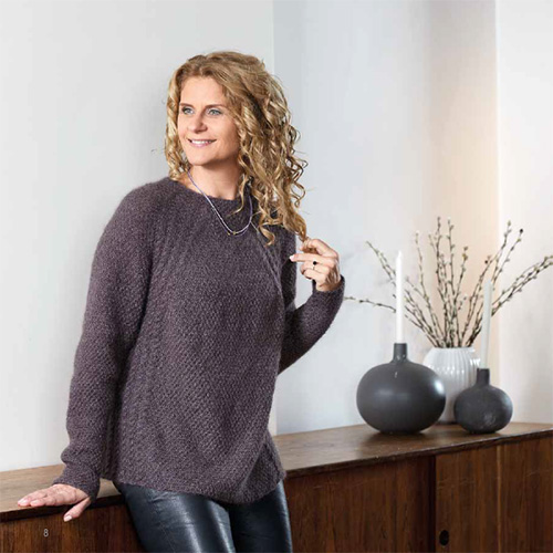 Trøjerne er ikke mere festlige, end at de kan bruges både en fredag aften, til en hyggelig frokost eller måske på en festlig arbejdsdag … Det er klassisk design, fordelt på åbne og lukkede modeller. En enkelt model er lang, resten af trøjerne er korte. Garnmaterialet er fra Isager.