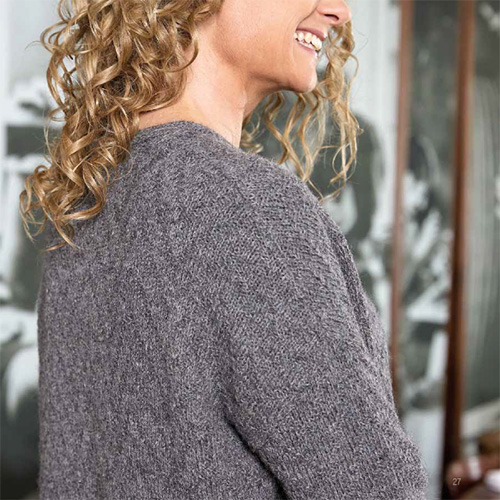 Trøjerne er ikke mere festlige, end at de kan bruges både en fredag aften, til en hyggelig frokost eller måske på en festlig arbejdsdag … Det er klassisk design, fordelt på åbne og lukkede modeller. En enkelt model er lang, resten af trøjerne er korte. Garnmaterialet er fra Isager.