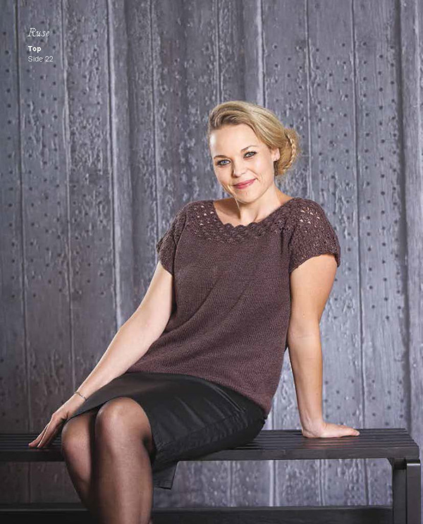Hæftet indeholder 5 trøjer, 2 nederdele og 1 tørklæde.