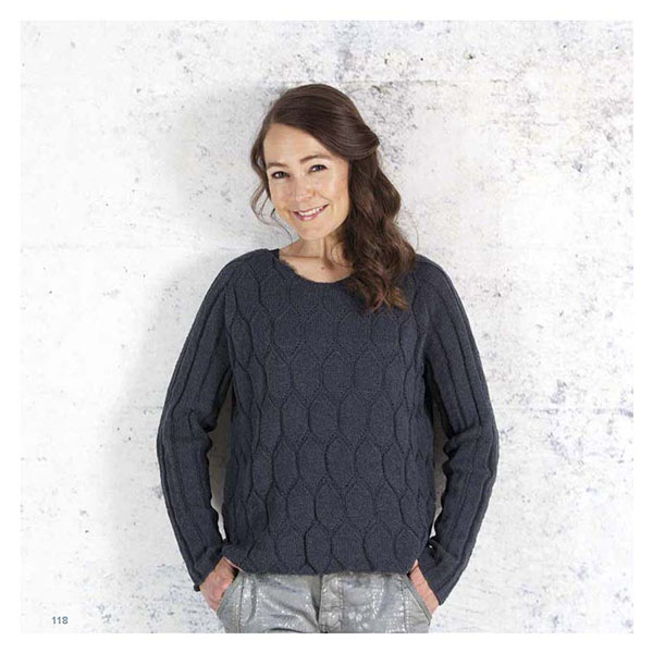 Farverne blå, hvid, grå og brun er gennemgående og tegner helheden i strikkebogen.