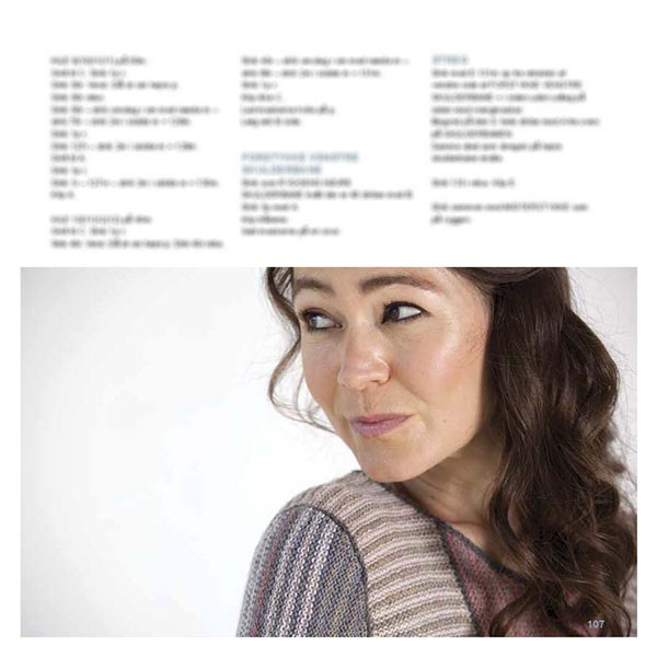 Farverne blå, hvid, grå og brun er gennemgående og tegner helheden i strikkebogen.
