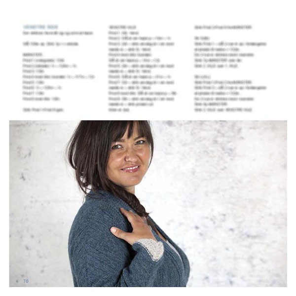 Farverne blå, hvid, grå og brun er gennemgående og tegner helheden i strikkebogen.