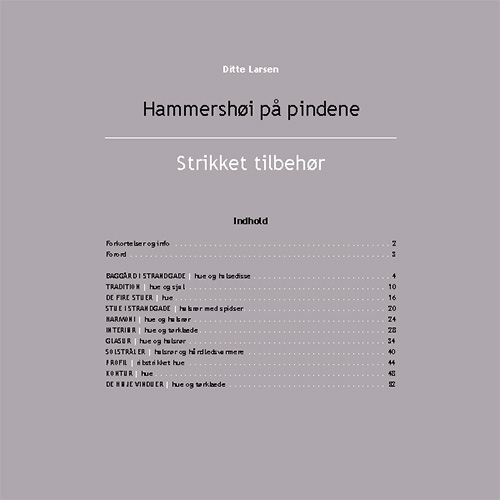 Hæftets modeller har fundet inspiration i Wilhelm Hammershøis malerier og i broderen, Svend Hammershøis, keramik. Resultatet er et strikkehæfte, som trækker klare linjer til det tidløse og enkle Hammershøiske univers. Ditte Larsen har gennem mere end 40 år været en markant del af den danske strikkeverden. Måske mest kendt som grundlægger af butikken Sommerfuglen på Vandkunsten. Men også som designer og arrangør af forskellige strikkeevents har Ditte Larsen gjort sig bemærket.