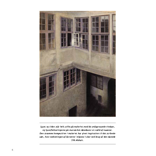 Hæftets modeller har fundet inspiration i Wilhelm Hammershøis malerier og i broderen, Svend Hammershøis, keramik. Resultatet er et strikkehæfte, som trækker klare linjer til det tidløse og enkle Hammershøiske univers. Ditte Larsen har gennem mere end 40 år været en markant del af den danske strikkeverden. Måske mest kendt som grundlægger af butikken Sommerfuglen på Vandkunsten. Men også som designer og arrangør af forskellige strikkeevents har Ditte Larsen gjort sig bemærket.
