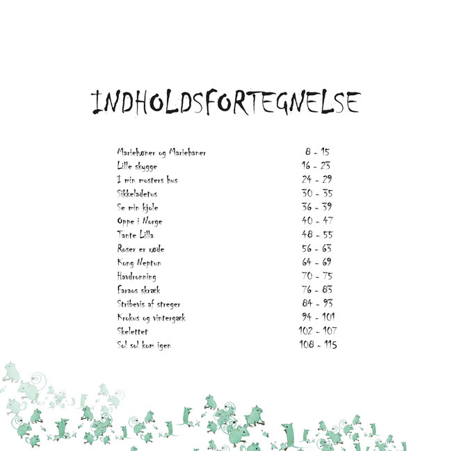 Her er strikketøj til både piger og drenge inspireret af rim og remser. Bogen indeholder kjoler, bluser, veste og små jakker, hvor der er kræset for detaljer og fine finesser.