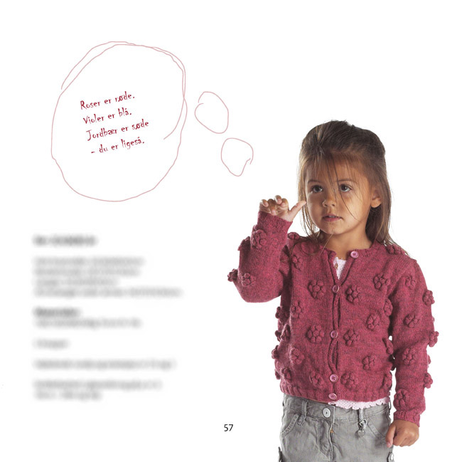 Her er strikketøj til både piger og drenge inspireret af rim og remser. Bogen indeholder kjoler, bluser, veste og små jakker, hvor der er kræset for detaljer og fine finesser.