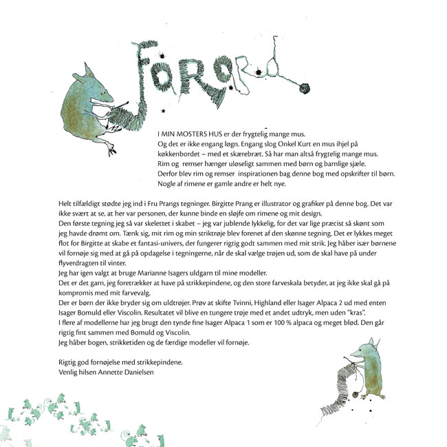 Her er strikketøj til både piger og drenge inspireret af rim og remser. Bogen indeholder kjoler, bluser, veste og små jakker, hvor der er kræset for detaljer og fine finesser.
