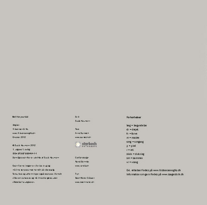 Opskrifterne er gennemarbejdede, så strikkeren fornøjet kan sætte sig i sofaen og kreere til familiens yngste.