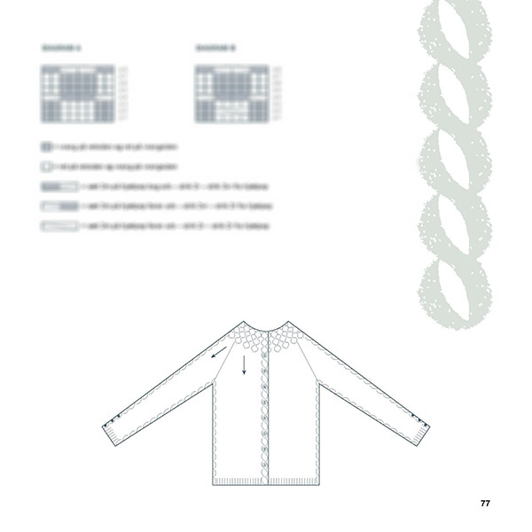 Annette har arbejdet videre med Kviums farver og motiver. Overført det til strikketeknikker, garnfarver og detaljer, der passer ind i Annettes eget design-univers.