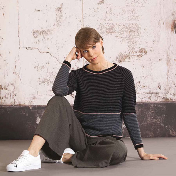 Annette har arbejdet videre med Kviums farver og motiver. Overført det til strikketeknikker, garnfarver og detaljer, der passer ind i Annettes eget design-univers.