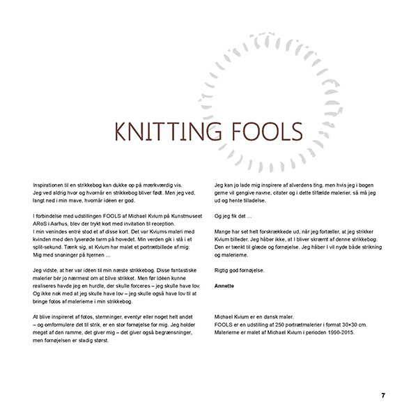 I 2015 udstillede Aros i Århus mere end 200 af Michael Kviums malerier i en udstilling kaldet ”Fools”. Denne udstilling er inspirationen bag den nye strikkebog.