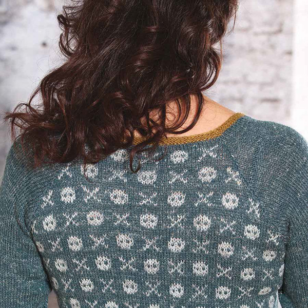 Annette har arbejdet videre med Kviums farver og motiver. Overført det til strikketeknikker, garnfarver og detaljer, der passer ind i Annettes eget design-univers.