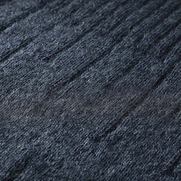 De strikketeknikker, der er anvendt, giver en overflade, hvor de mørke nuancer får lov at spille mod hinanden. Der er brugt strukturstrik, snoninger, vævestrik, men også simpel glatstrikning hvor det er ret og vrang der udgør mønsteret.