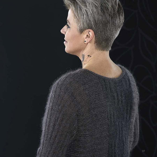 De strikketeknikker, der er anvendt, giver en overflade, hvor de mørke nuancer får lov at spille mod hinanden. Der er brugt strukturstrik, snoninger, vævestrik, men også simpel glatstrikning hvor det er ret og vrang der udgør mønsteret.