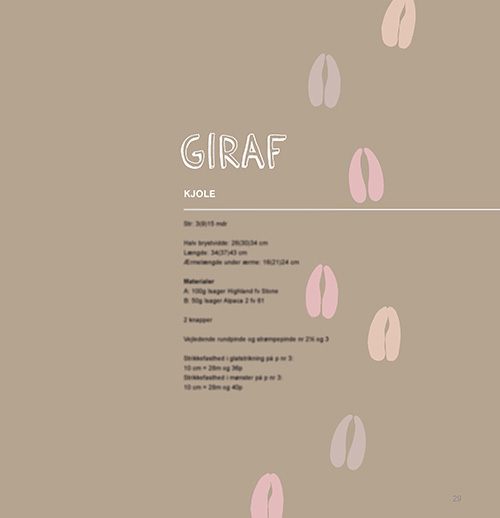Opskrifterne er i 3 størrelser: 3(9)15 mdr Inspirationen er denne gang fra 7 vilde dyr. Til hvert dyr er der designet både en model til piger og en model til drenge.