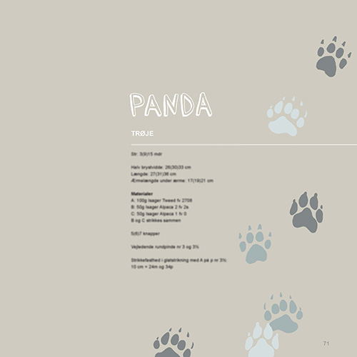 Opskrifterne er i 3 størrelser: 3(9)15 mdr Inspirationen er denne gang fra 7 vilde dyr. Til hvert dyr er der designet både en model til piger og en model til drenge.
