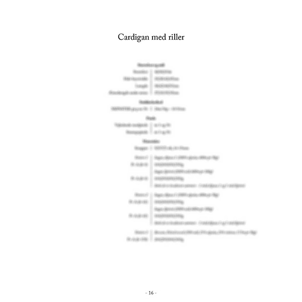 Anne har arbejdet i fire forskellige garner fra henholdsvis Filcolana, Isager garn, Rowan og Sandnes garn. Alle designs er vist i mindst to forskellige garner og farveversioner for at vise, hvordan udtrykket kan varieres.