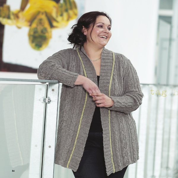 STRIK I STOR STIL er en strikkebog med 11 opskrifter til kvinder fra str 44 til str 54.