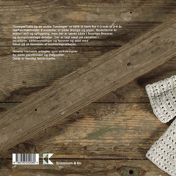 Ninette har de sidste par år designet til forskellige garnfirmaer og til magasiner. Nu har hun samlet 8 modeller til dette fine hæfte. Modellerne er bygget op i et enkelt snit med variation i strukturer, strikkeretninger og faconer. Ved alle modeller er der tænkt, at der skulle være et minimum af monteringsarbejde. Garnforbruget er BC Garn, Filcolana, Onion, Permin og Sandnes Garn.