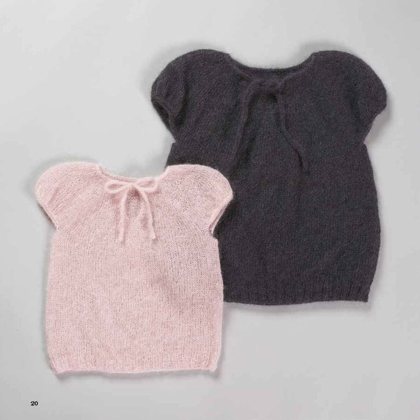 Der er skønne trøjer og sweatre, en kjole, en hue og en sej “arbejdsjakke”. Modellerne er vist i to farvekombinationer og de fleste kan strikkes til både drenge og piger.