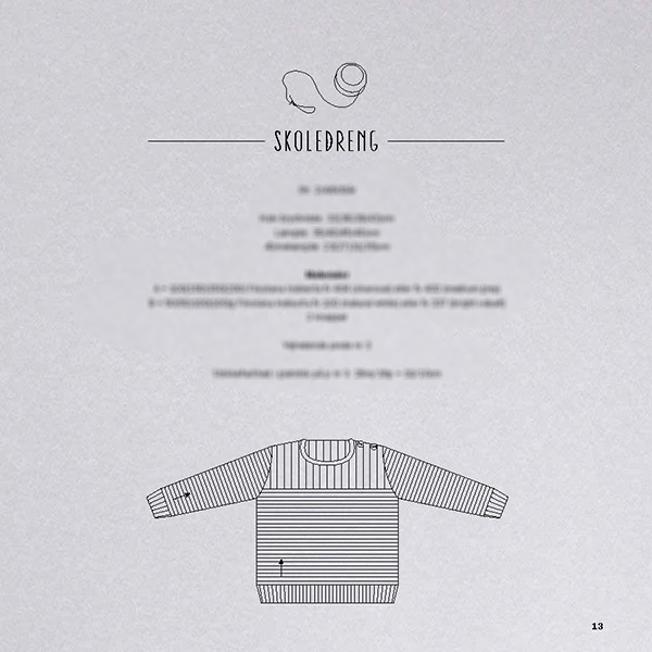 Der er skønne trøjer og sweatre, en kjole, en hue og en sej “arbejdsjakke”. Modellerne er vist i to farvekombinationer og de fleste kan strikkes til både drenge og piger.